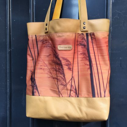 Fijne ruime shopper van leer, de tas heeft een grote binnenzak en hengsels waarmee de shopper zowel in de hand als aan de schouder kan worden gedragen. Dubbel voordeel: geen plastic tassen meer nodig en dat in combinatie met hergebruik.